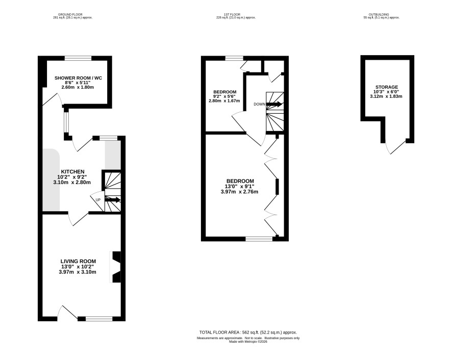 This two bedroom mid-terrace house is situated on the edge of the popular market town of Bungay, within walking distance of the town centre and its amenities. The accommodation comprises a sitting room with a front-facing aspect and feature brick fireplace, leading through to the kitchen with granite work surfaces and an integral oven and hob. The kitchen gives access to the WC/shower room, fitted with a walk-in shower. To the first floor are two bedrooms off a landing. The main bedroom benefits from large fitted wardrobes. The property has a bisected rear garden with an outbuilding providing additional storage.