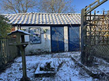 Gated front garden leading to front entrance. To the rear a West facing rear garden with brick and tile outbuilding/store with coal/log store beside.