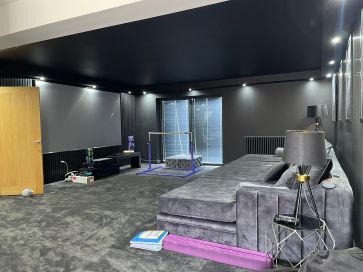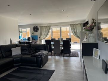 Entrance Hall, open plan kitchen and sitting room with dining area, three bedrooms (one bedroom currently used as a further sitting room, separate cloakroom, utility and cinema room. Area suitable for a home gym and internal door into double garage.