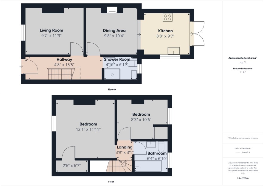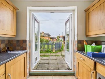 Hall entrance, sitting room, downstairs shower room, kitchen/diner to the rear with french doors opening on to the fenced courtyard garden. Upstairs are two bedrooms, a large double and a second generous single both with fitted storage cupboards, and bathroom.