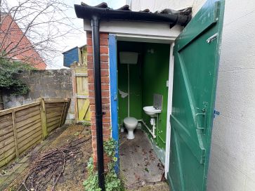 Front garden providing off road parking, rear garden in need of attention, outside toilet to rear