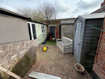 Enclosed rear garden with two timber sheds