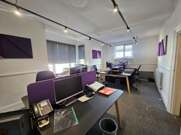 Main reception and office, inner offices with access to basement storage rooms, kitchen and rear store. Further offices and toilet on the first floor.