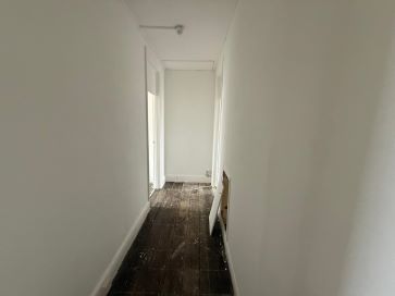 Shared hall and staircase to second floor landing, private door to hall, living room/kitchen, two bedrooms, bathroom.