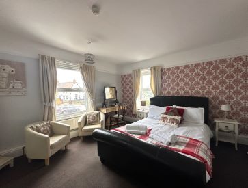 Entrance hall, guest bedroom with ensuite, two dining areas, a further bedroom with ensuite and patio doors with own entrance and private seating area, guest sitting room with staircase to private room for manager, well equipped kitchen