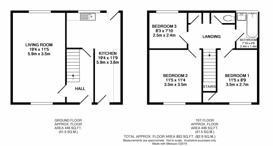 Three bedrooms, bathroom, w.c.