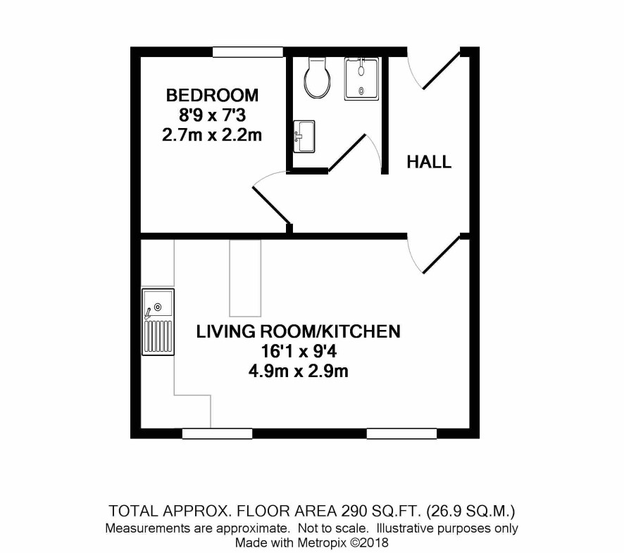 Hall, kitchen/living room, bedroom, shower room.