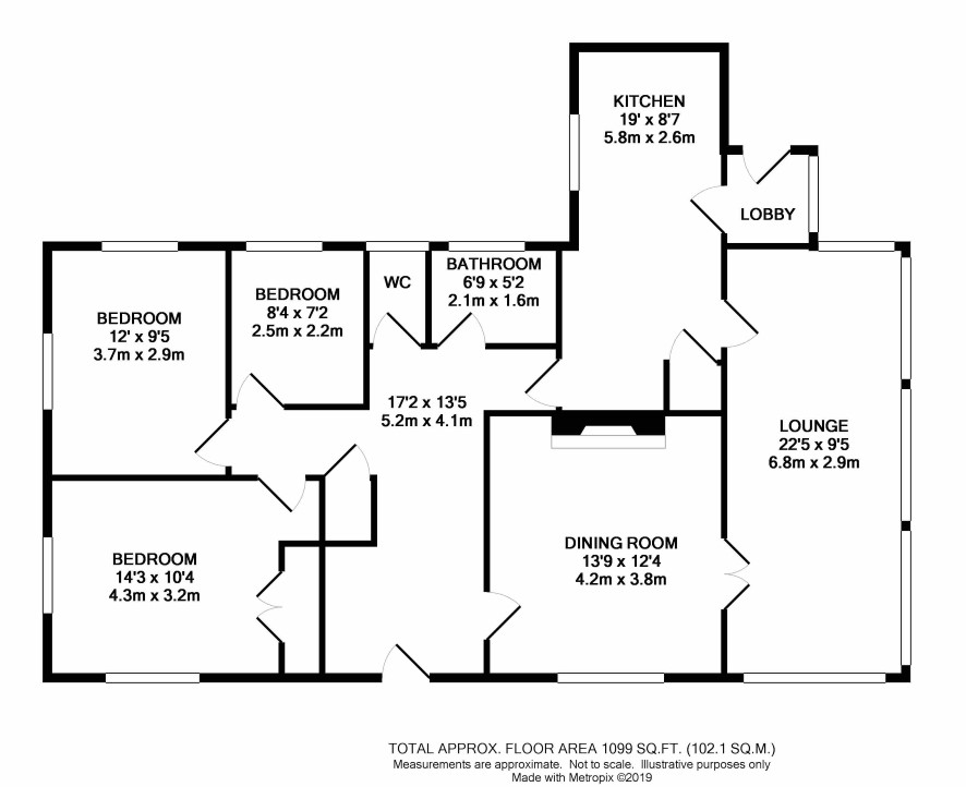 Hall, lounge, dining room, kitchen, 3 bedrooms, bathroom, w.c.