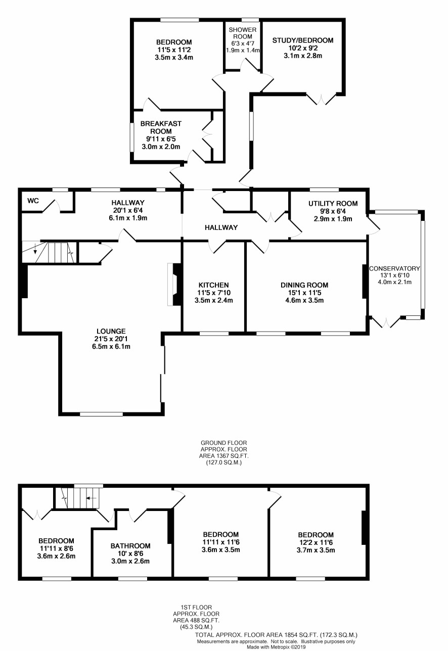 Lounge, dining room, study, kitchen, breakfast room, bedroom, shower room, utility room, conservatory