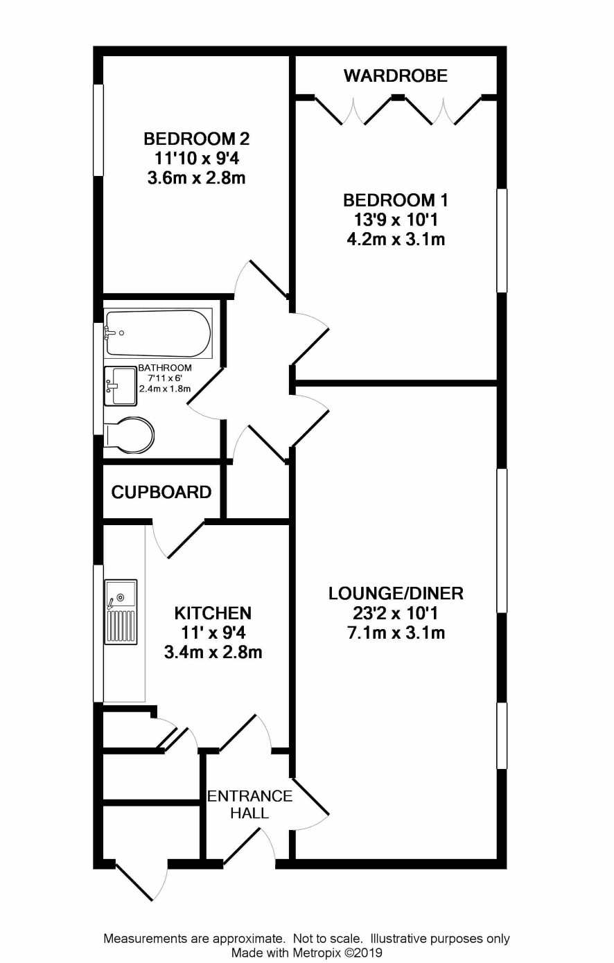 Entrance lobby, lounge/diner, kitchen, 2 double bedrooms, bathroom.