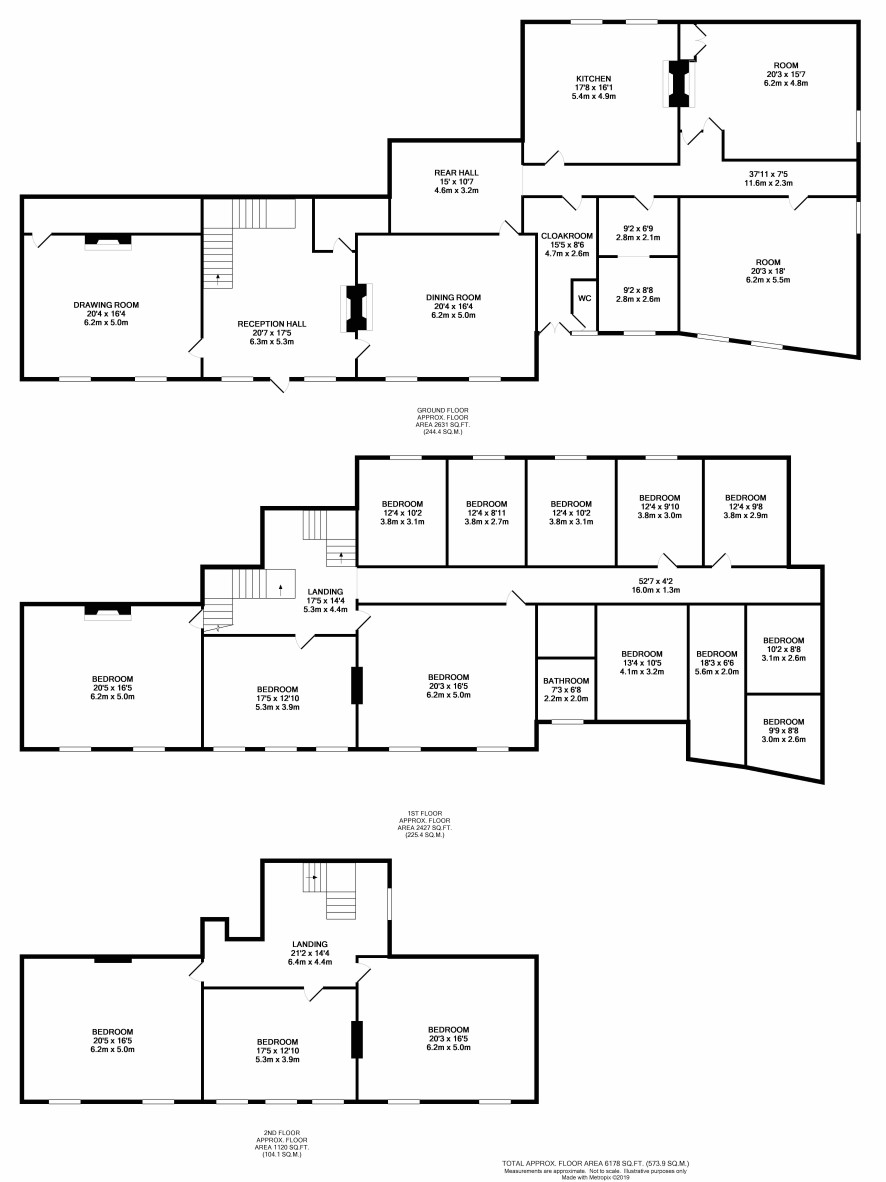 Landing, 11 bedrooms, bathroom.