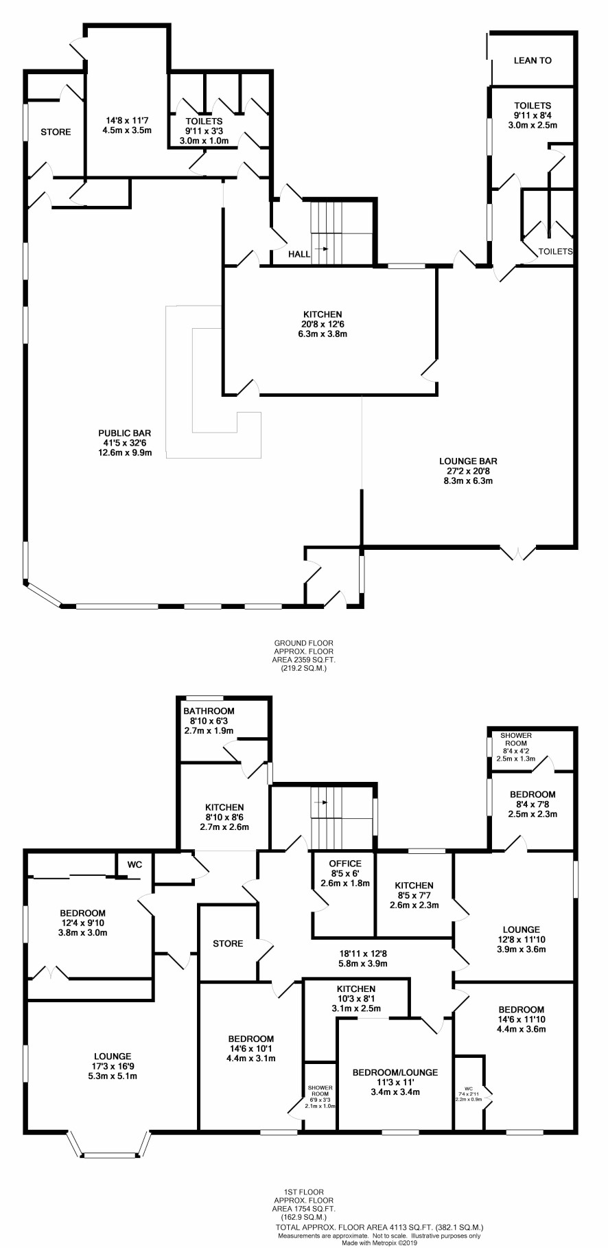 Public bar, lounge bar, kitchen, store, toilets, cellar