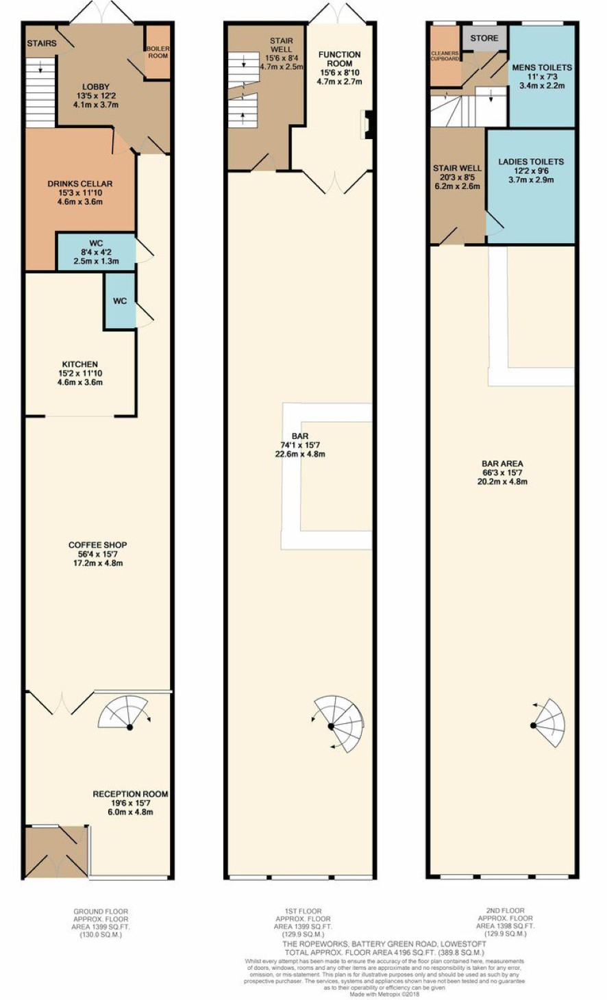 Reception area, cafe, kitchen, cellarage, store, toilets.