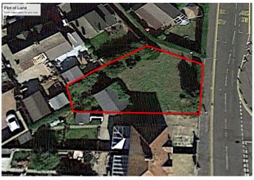 The building plot is located in Saddlebow Road, South Lynn with existing outbuilding to rear. There is outline planning permission for a three bedroom detached house with detached garage.