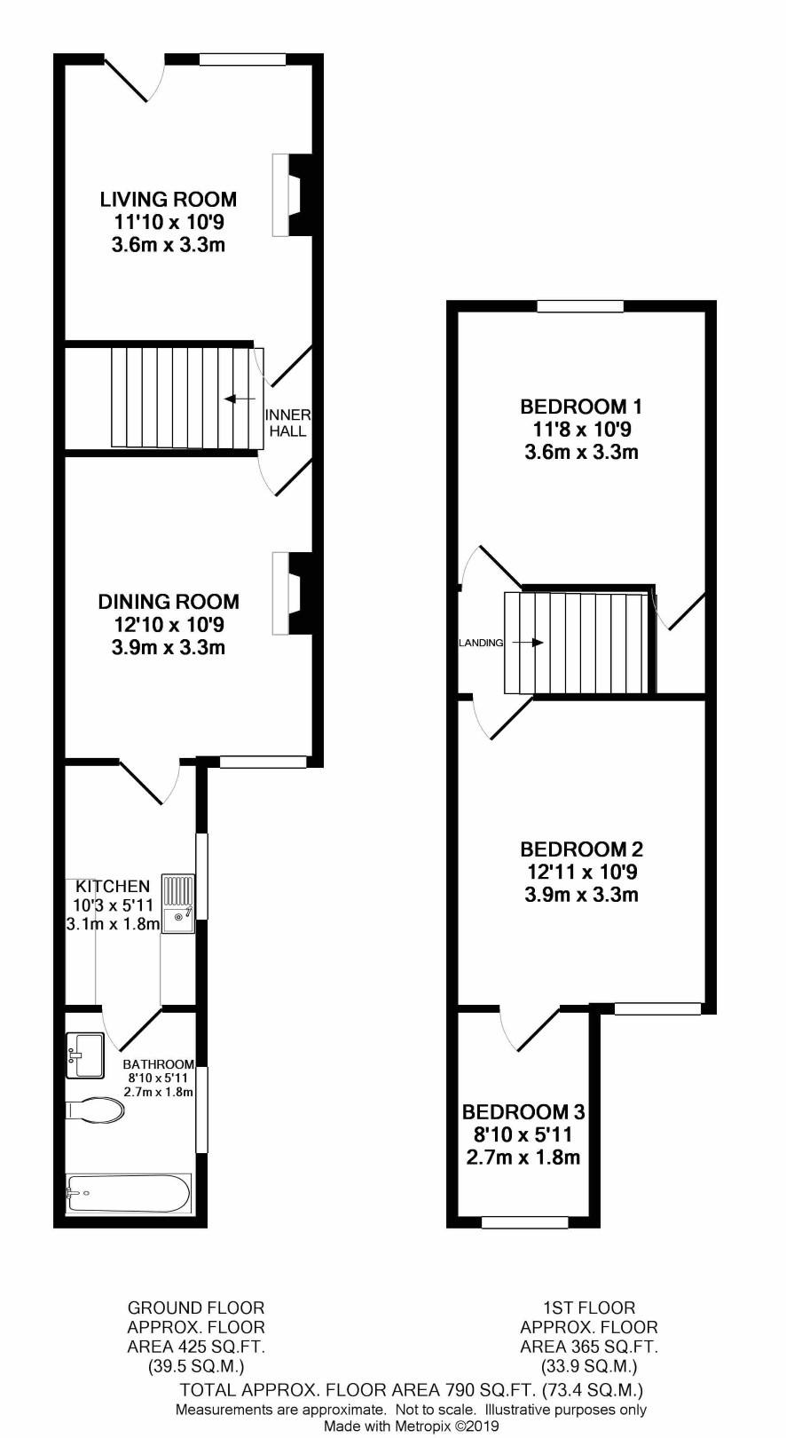 An end terrace 3 bedroom house with a tenant providing an income of £7,320 pa.