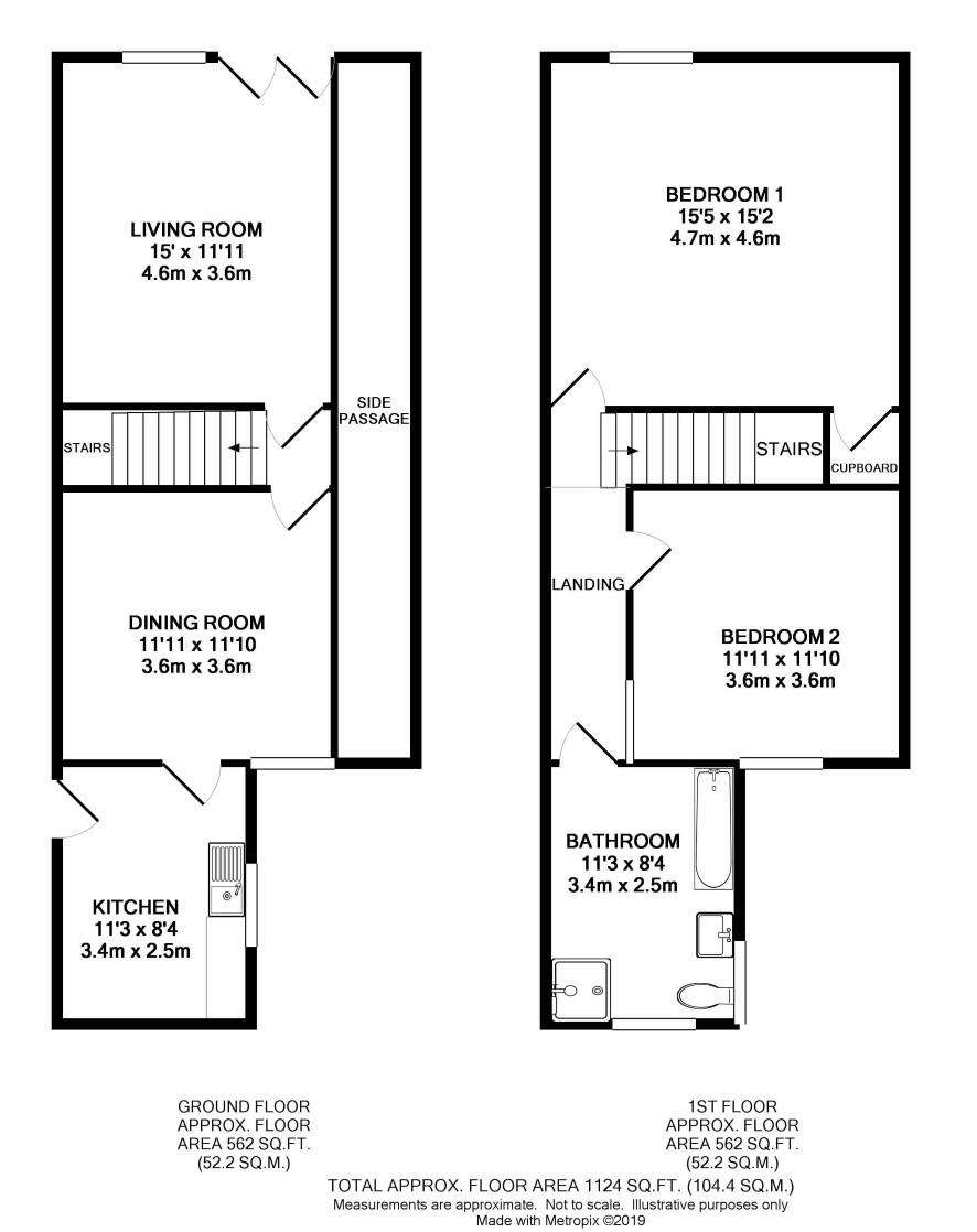 Two bedrooms, bathroom
