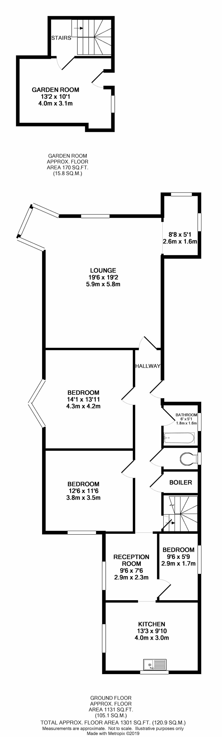 Ground floor: communal entrance hall, side entrance leading to lounge First floor: sitting room, dining area, three bedrooms, bathroom with separate toilet, kitchen.