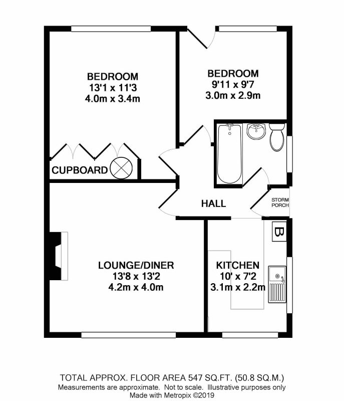 Hall, lounge, kitchen, two bedrooms, bathroom