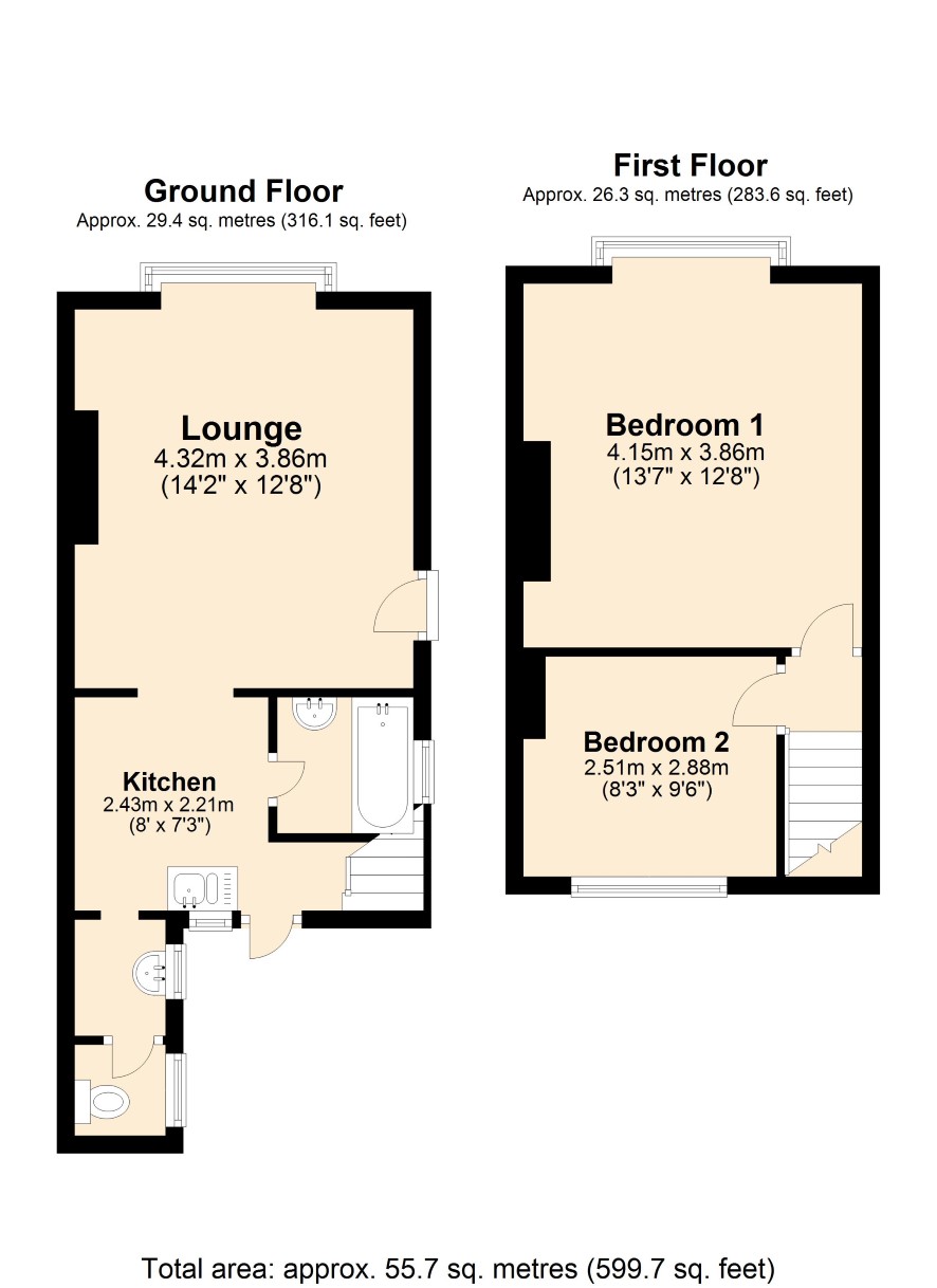 Ground Floor: Lounge, Kitchen, Bathroom, Lobby, WC. First Floor: Bedroom One, Bedroom Two. Outside: There is a privet hedge to the front of the property, a garden to the side and a gate leading to a rear yard.