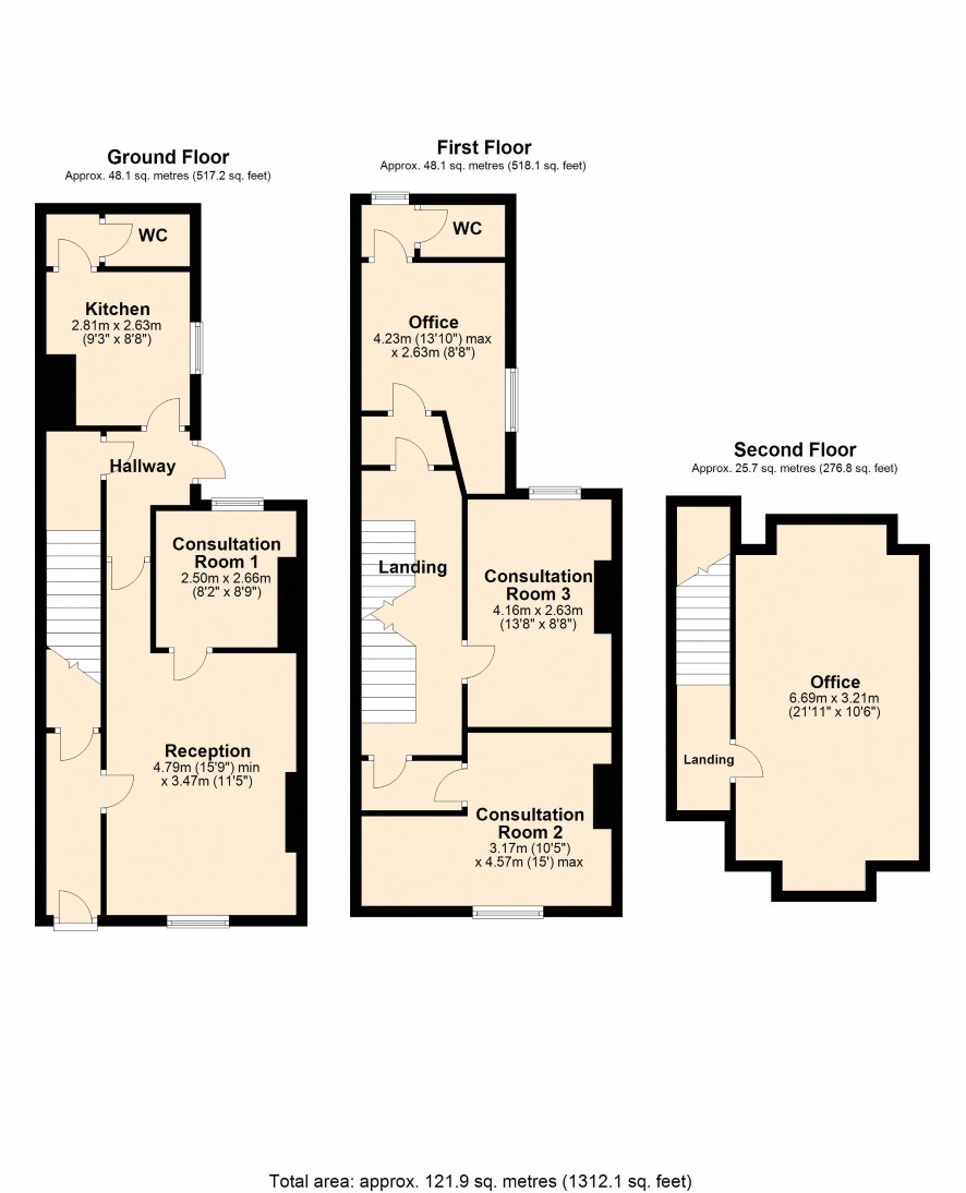 Ground Floor: Reception, Consultaion Room One, Hallway, Kitchen, WC. First Floor: Landing, Consultation Room Two, Consultation Room Three, Office, WC. Second Floor: Office. Outside: A secure rear garden lies to the rear and there is a gated side access