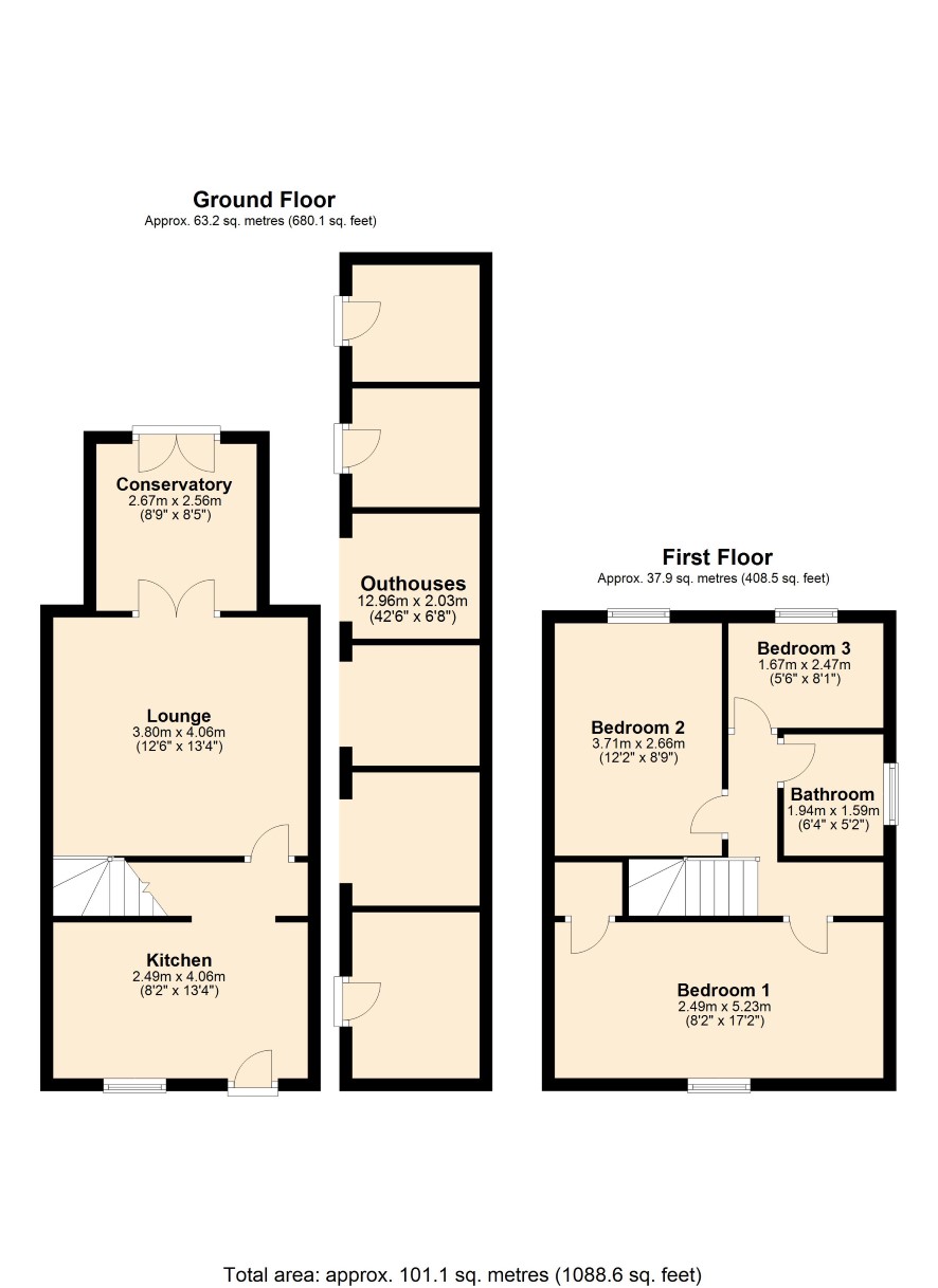 Ground Floor: Kitchen, Inner Lobby, Lounge, Conservatory. First Floor:Landing, Bedroom One, Bedroom two, Bedroom Three, Bathroom. Outside: TBC