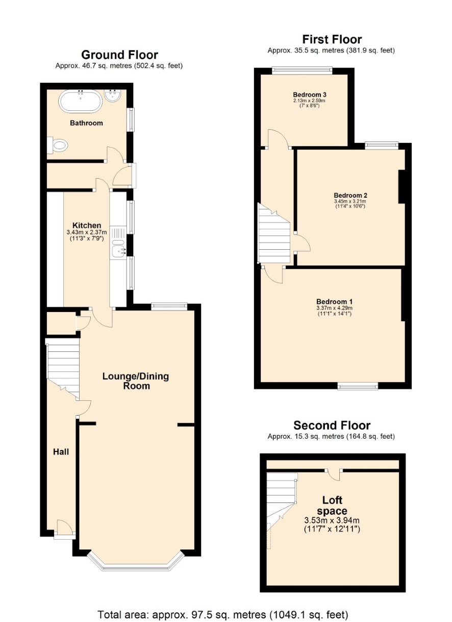 Ground Floor: Entrance Hall, Lounge, Kitcehn, Bathroom. First Floor: Landing, Bedroom One, Bedroom Two, Bedroom Three, Loft Space. Outside: To the front of the property there is a wrought iron fence to the boundaries and to the rear there is a small yard.