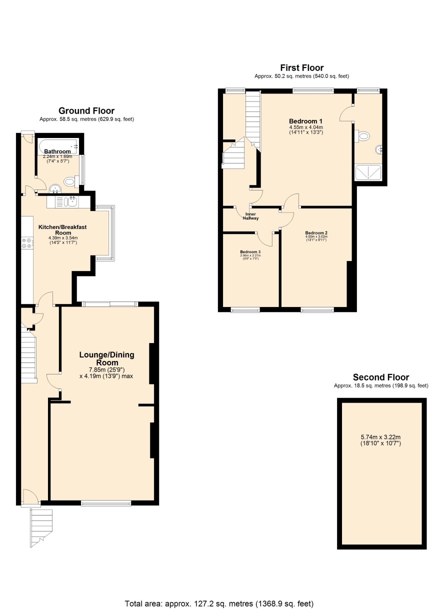 Ground Floor: Entrance Hall, Lounge/Dining Area, Breakfast Kitchen, Lobby, Ground Floor Bathroom. First Floor: Bedroom One, En-Suite Shower Room, Bedroom Two, Bedroom Three. Second Floor: Attic Room. Outside: To the rear is a good-sized garden which backs on to a tenfoot.