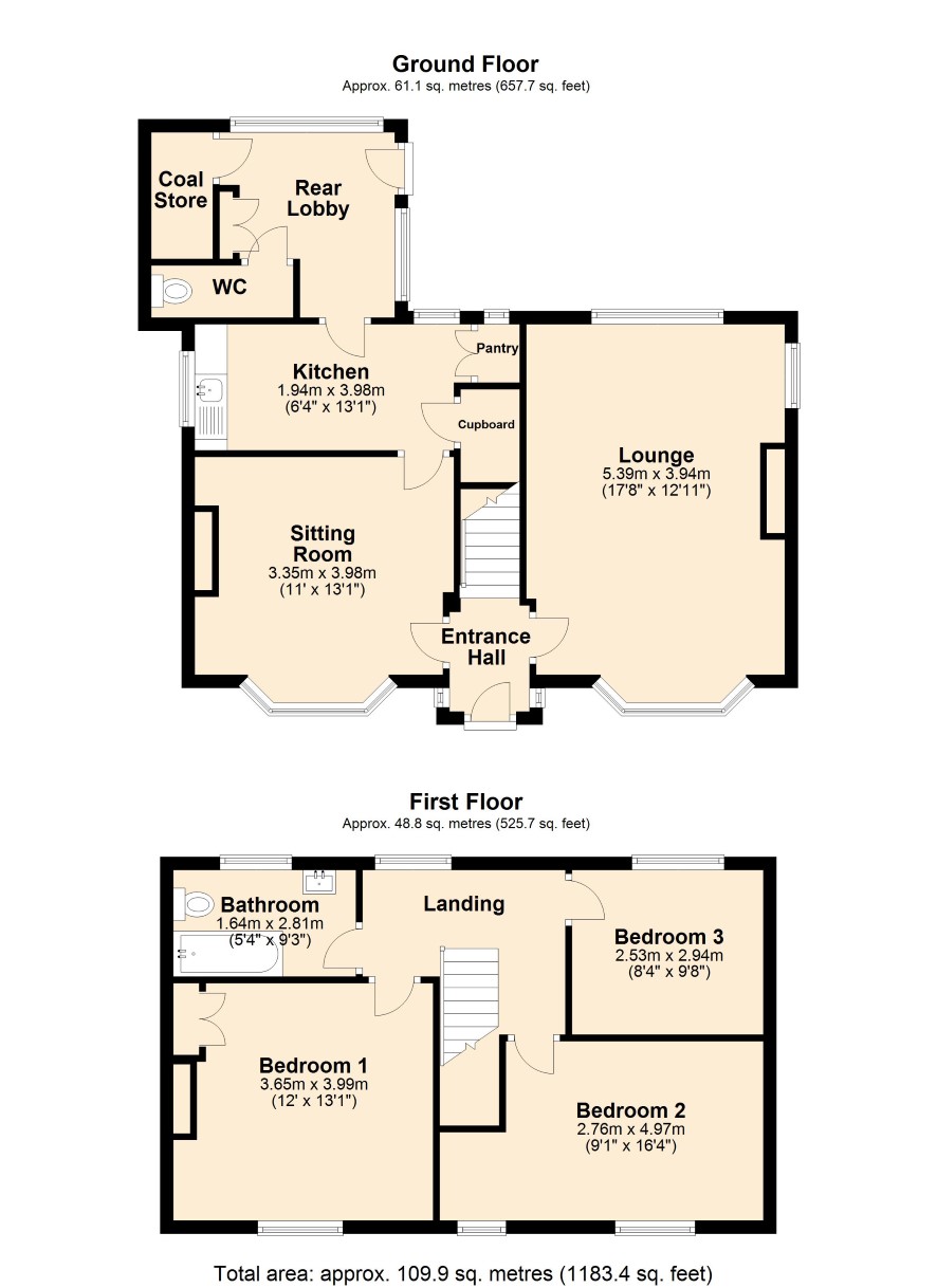 GROUND FLOOR Entrance Hall: Radiator. Through Lounge: Front-facing bay window, open grate tiled fireplace and two radiators. Dining Room: Front-facing bay window, open grate tiled fireplace and radiator. Kitchen: Sink unit, floor-standing gas central heating boiler, electric cooker point, uPVC double glazed window, understairs cupboard and pantry. Rear Entrance Lobby: Built-in cupboards, uPVC double glazed window and door. Separate WC: Low level toilet suite. FIRST FLOOR Landing Bedroom One: Radiator and airing cupboard with hot water tank (fitted electric immersion heater). Bedroom Two: Radiator. Bedroom Three: Radiator and uPVC double glazed window. Bathroom / WC: Enamelled steel bath, pedestal wash-hand basin and low level WC. Radiator. EXTERNAL The house stands well back from the road within its grassed plot of approximately quarter of an acre. Side driveway leads to a detached garage and parking at the front of the house. The rear garden includes flowering, shrubs and trees.