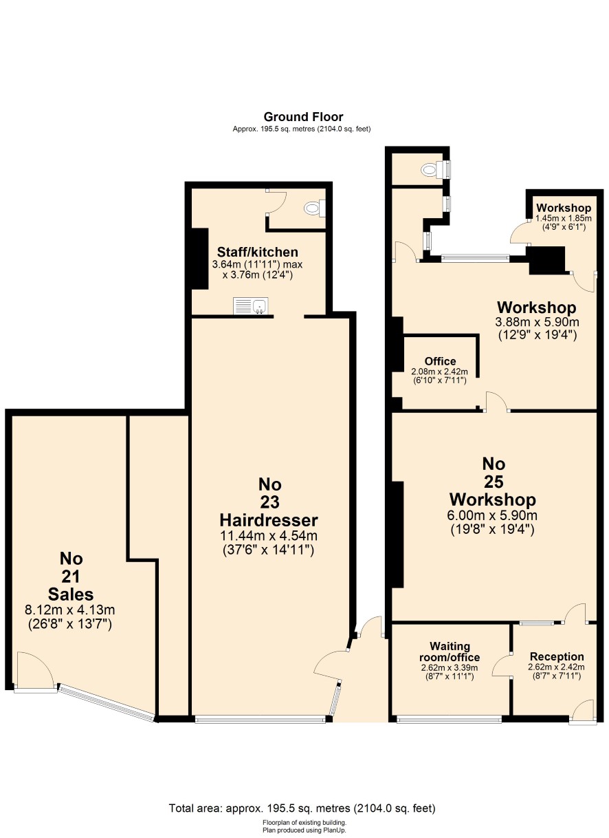 25 BEVERLEY ROAD GROUND FLOOR Reception (67 sq. ft. / 6.2 sq. m.) Waiting Room (95 sq. ft. / 9 sq. m.) Main Workshop (378 sq. ft. / 35 sq. m.) Rear Workshops and Office (266 sq. ft. / 24 sq. m.) Separate side entrance hall to residential accommodation Flat A Bed Sitting Room (140 x 109" / 4.27m x 3.32m): Gas fire. Kitchen (102" x 115 maximum / 3.11m x 3.51m maximum): L-shaped with fitted base units and gas boiler. WC FIRST FLOOR Flat B Bed Sitting Room / Kitchen: With a range of base and wall units, electric oven and hob, gas water heater and door to balcony. Lobby Separate WC Shower and wash basin (accessed via communal landing). Flat C Living Room / Kitchen (225" x 146" narrowing to 90" / 6.86m x 4.45m narrowing to 2.74m): l-shaped with a range of base and wall units, electric oven, gas hob and wall mounted gas boiler. Bedroom (710" x 97" / 2.16m x 2.96m) Bathroom with WC SECOND FLOOR Flat D Entrance Lobby Bathroom with WC Bedroom (88" x 113" / 2.68m x 3.44m) Living Room (146" x 110" / 4.45m x 3.35m) Kitchen (711" x 110" / 2.17m x 3.35m): With fitted units and gas boiler. EXTERNAL Rear yard and parking.