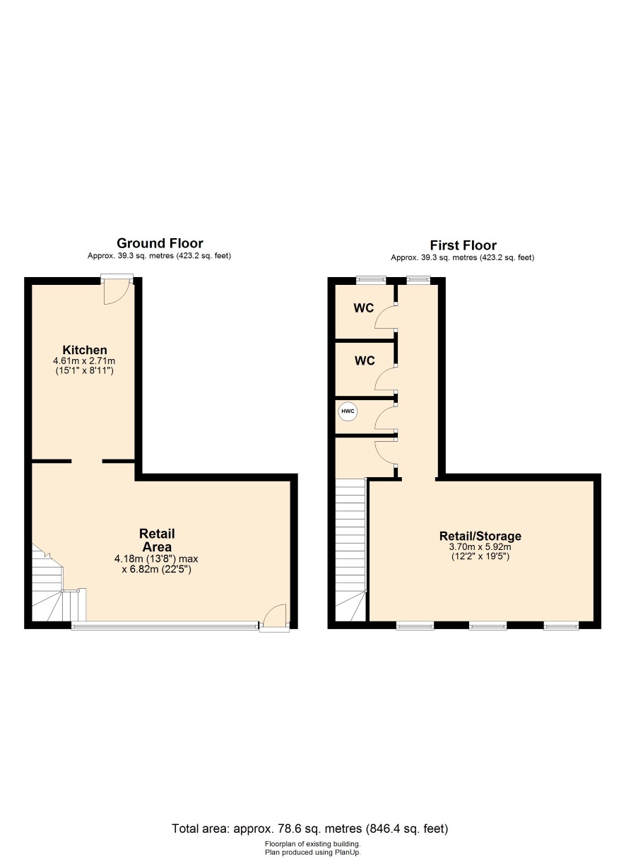 Measured in accordance with the RICS Code of Measuring Practice (6th Edn) the property provides the following approximate Net Internal Areas: Ground floor sales and kitchen - 411 sq ft First floor - 355 sq ft