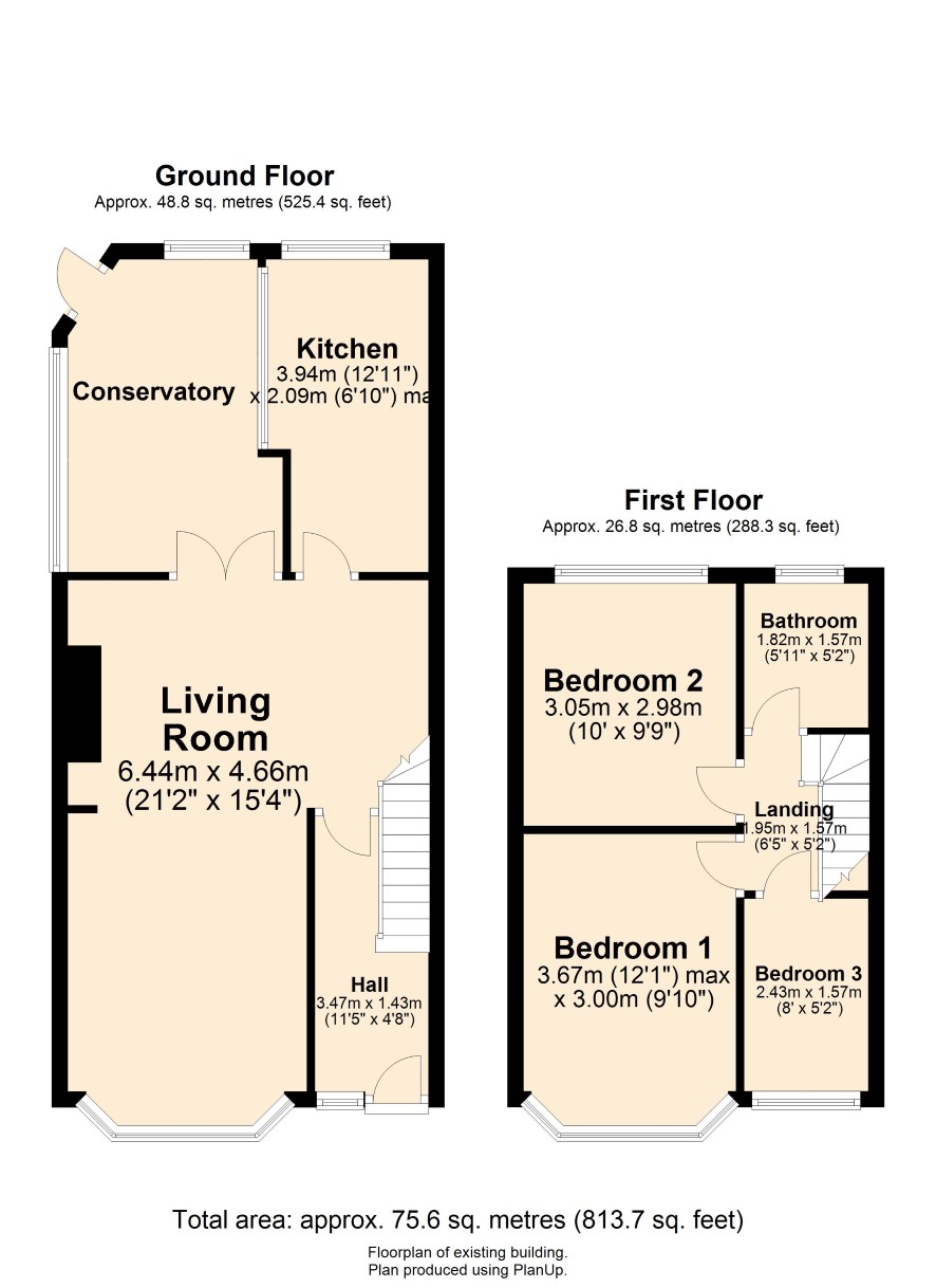 GROUND FLOOR Entrance Hall: Radiator. Lounge Area: Front bay window and radiator. Dining Area: Fireplace opening and French doors to: Veranda Kitchen: Fitted with a range of cabinets with worktop including breakfast bar and single drainer sink. Radiator. FIRST FLOOR Landing Bedroom One: Radiator. Bedroom Two: Wall-mounted gas combination boiler (for domestic hot water). Radiator. Bedroom Three: Radiator. Bathroom / WC: With three piece suite.