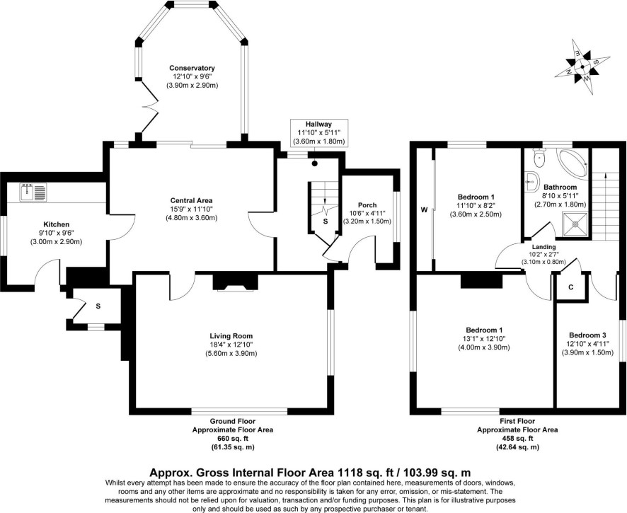 Ground Floor Porch With tiled floor. Entrance Hall With understairs cupboard, double radiator and staircase leading off. Living Room With open fire in a traditional fireplace, two single radiators, coving to the ceiling and TV aerial point. Kitchen With base and wall units, electric cooker point, plumbing for and automatic washing machine, double radiator and rear entrance door. Conservatory With double doors to the garden, double radiator and wall light point. Dining Room With storage cupboard, sliding doors to the conservatory, coving to the ceiling and double radiator. First Floor Landing With airing cupboard and access to the roof space. Bedroom 1 With single radiator and coving to the ceiling. Bedroom 2 With deep fitted wardrobes to one wall, single radiator and countryside views. Bedroom 3 With single radiator and countryside views. Bathroom With four piece suite including corner bath, shower cubicle with electric shower, pedestal wash hand basin, low level WC, fully tiled walls and radiator. Outside The property stands on a generous plot with gardens to the front, side and rear. A private side drive leads to a detached single garage. There is an external WC that also houses the oil fired boiler. A brick coal shed adjoins the garage and various timber sheds and a greenhouse are located behind the garage.