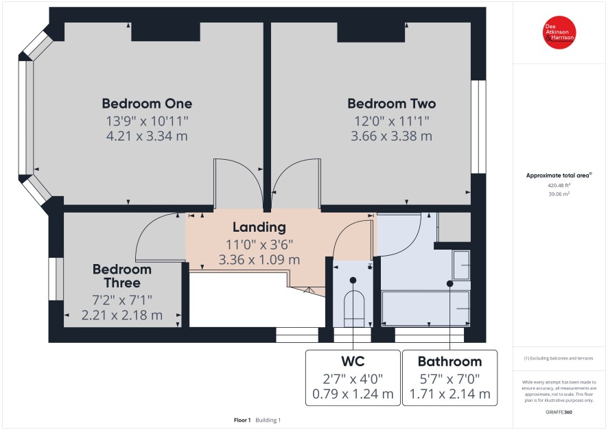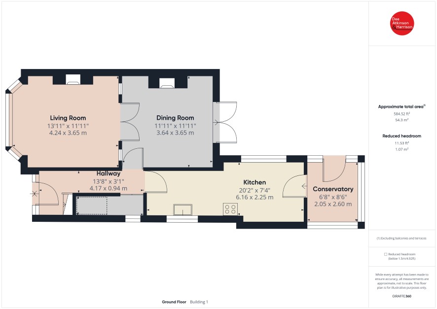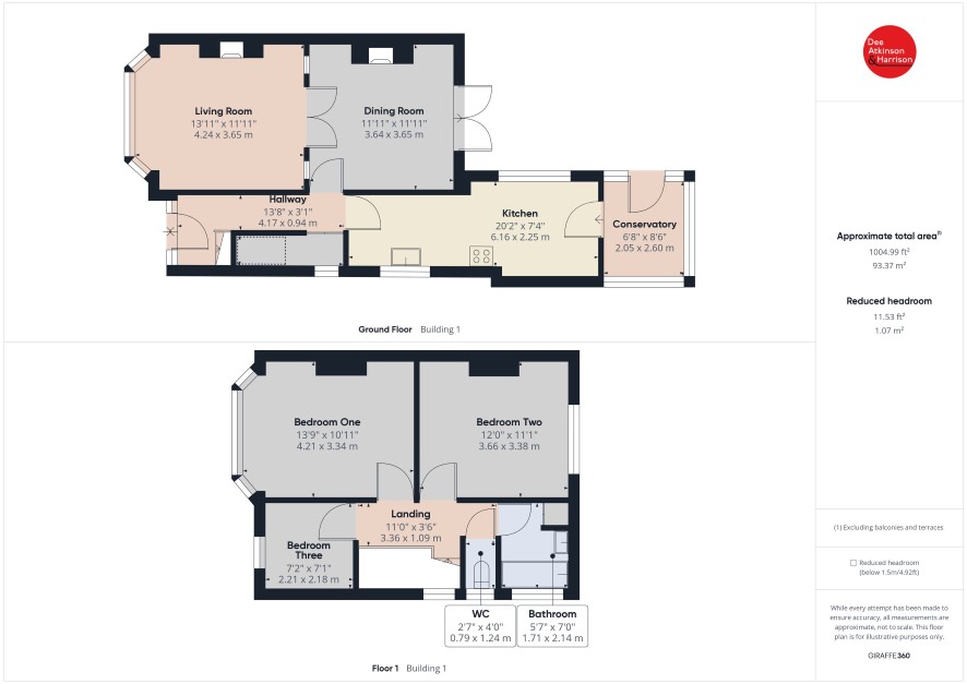 ENTRANCE HALL- 13'8 (4.17m) x 3'1 (0.94m) Composite door to the front aspect, picture rail, stairs leading to the first floor landing, spacious understairs cupboard, engineered wooden flooring, telephone point and power points. LOUNGE- 13'11 (4.24m) x 11'11 (3.65m) Bay window to the front aspect, picture rail, gas fireplace with tiled hearth and wooden surround, fitted carpets, telephone point and power points. DINING ROOM- 11'11 (3.64m) x 11'11 (3.65m) French doors to the rear aspect, picture rail, gas fireplace with tiled hearth and wooden surround, fitted carpets and power points. KITCHEN- 20'2 (6.16m) x 7'4 (2.25m) Spacious kitchen with door to the rear aspect, windows to either side, tiled splash back, a range of wall and base units, one and a half sink with drainer unit, ample space for white goods, tiled flooring, electric wall mounted heater and power points. CONSERVATORY- 6'8 (2.05m) x 8'6 (2.60m) Door to the side aspect, window to all three sides and laminate flooring. FIRST FLOOR LANDING- 11'0 (3.36m) x 3'6 (1.09m) Opaque window to the side aspect, fitted carpets and power point. There is also access to the loft. BEDROOM ONE- 13'9 (4.21m) x 10'11 (3.34m) Window to the front aspect, picture rail, fitted carpets and power points. BEDROOM TWO- 12'0 (3.66m) x 11'1 (3.38m) Window to the rear aspect, picture rail, fitted carpets and power points. BEDROOM THREE- 7'2 (2.21m) x 7'1 (2.18m) Window to the front aspect, picture rail, built in cupboard, fitted carpets and power points. BATHROOM- 5'7 (1.71m) x 7'0 (2.14m) Opaque window to the side aspect, coving, fully tiled walls, built in storage cupboard, sink with vanity unit, panelled bath with over head shower attachment and tiled flooring. W/C- 2'7 (0.79m) x 4'0 (1.24m) Separate to the bathroom there is an opaque window to the side aspect, partially tile