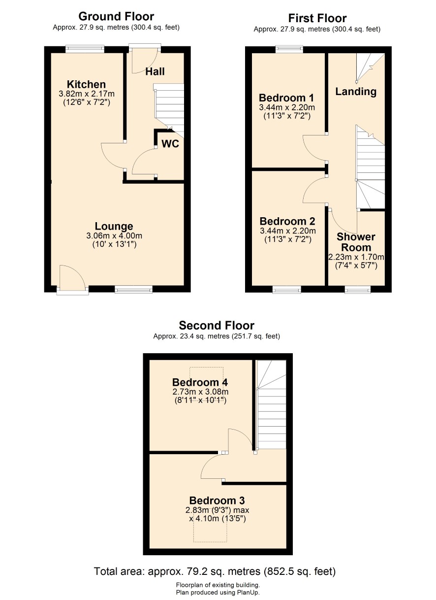 Ground Floor: Entrance Hall, WC and open plan living room and fitted kitchen with appliances. First Floor: Landing, two double bedrooms, shower room. Second Floor: Landing, two further double bedrooms. Outside: The property is completed with an enclosed garden area. In addition there are two private parking spaces available opposite the property.