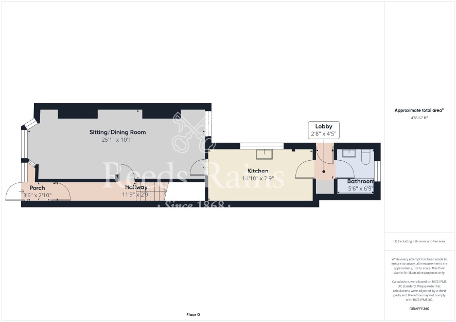 Ground Floor Entrance Porch Approached from the front through a part-glazed entrance door. Useful space with a further door leading into the entrance hall. Entrance Hall Staircase approach leading ahead of the first floor level. Original ceiling coving. Corbels. Door leading through to the: Sitting/Dining Room 25'1" x 10'1" (7.65m x 3.07m) Enjoying dual aspects with a walk-in bay window facing the front and at the opposite end a rear facing window. Original ceiling coving. Two gas fires. Understairs storage cupboard. Door leading into the: Kitchen 14'10" x 7'9" (4.52m x 2.36m) With a side facing. Sizeable kitchen with a range of traditional base and wall mounted cabinets with contrasting countertops. Inset stainless steel sink unit. Panelled ceiling with inset spotlights. Rear Lobby 4'5" x 2'8" (1.35m x 0.81m) With a double-glazed entrance door leading outside. Door leading through to the bathroom. Built-in storage. Bathroom 6'9" x 5'6" (2.06m x 1.68m) With a rear facing window. Appointed with a three-piece coloured suite comprising panelled bath, wash hand basin and low flush WC. Ceramic tiled splash-backs. First Floor Landing 12'2" x 4'11" (3.7m x 1.5m) With a small rear facing window. Central landing area with original panelled doors that lead off to each of the two bedrooms. Principal Bedroom 12' x 10'5" (3.66m x 3.18m) Front facing double-bedroom. Bedroom Two 12'3" x 7'10" (3.73m x 2.4m) Rear facing bedroom.