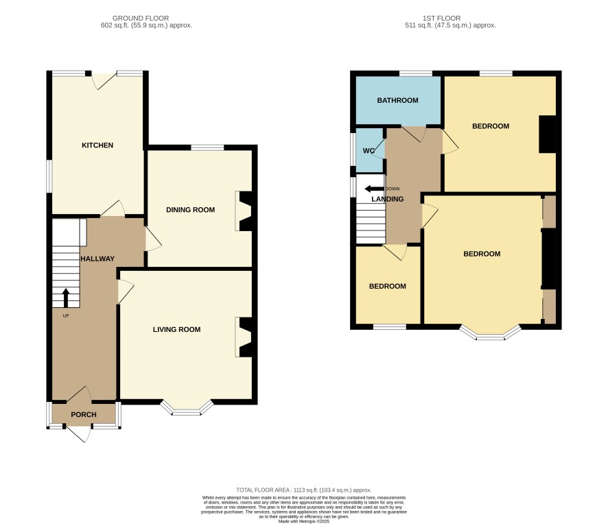 Ground Floor Entrance Porch Hallway Living Room 13'8" x 14'4" (4.17m x 4.37m) A spacious living room with a bay window, a feature fireplace, a radiator and UPVC double glazed window Dining Room 12'2" x 10'11" (3.7m x 3.33m) The second reception has high ceilings, a feature fireplace, a UPVC double-glazed window, and a radiator. Kitchen 9'8" x 14'3" (2.95m x 4.34m) An extended kitchen with both wall and base units with worktop over, plumbing for washing machine, space for appliances, built-in storage cupboard, UPVC double glazed windows and door out to rear garden. First Floor Landing Bedroom One 14'7" x 11'1" (4.45m x 3.38m) A large double bedroom with built-in storage on either side of the chimney breast, UPVC double glazed window and a radiator. Bedroom Two 12' x 11'7" (3.66m x 3.53m) A spacious double bedroom with a UPVC double glazed window and a radiator. Bedroom Three 7'5" x 8'3" (2.26m x 2.51m) The third bedroom has an UPVC double-glazed window and a radiator. Bathroom 8'3" x 5'3" (2.51m x 1.6m) Family bathroom with panelled bath, hand wash basin, shower cubicle and UPVC double glazed window. Separate W.C. With a low-flush W.C and UPVC double-glazed window. Outside The property benefits from off-road parking for multiple vehicles to the front, and to the rear, it has a good-sized rear garden with a workshop, multiple sheds, a patio area, and an area laid to lawn.