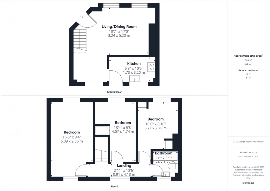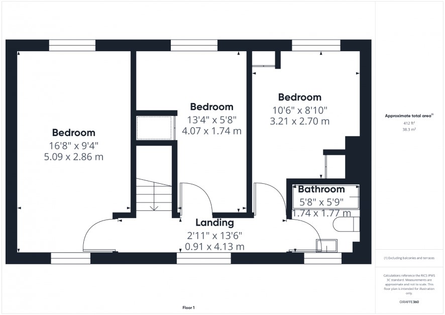 : Landing leading to three Bedrooms and Family Bathroom.