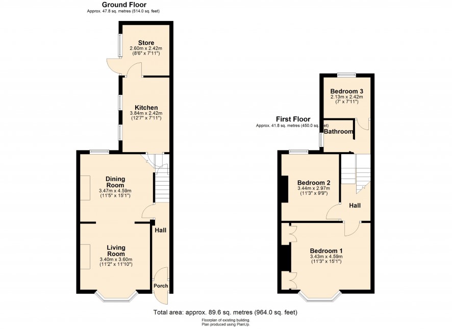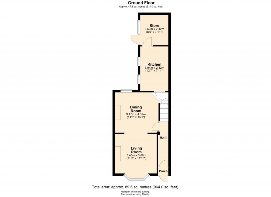 Porch, hall, living room, dining room, kitchen, store/utility.