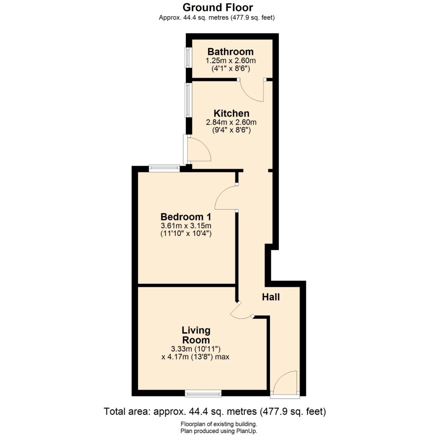 : Entrance hall, living room, bedroom one, kitchen and bathroom.