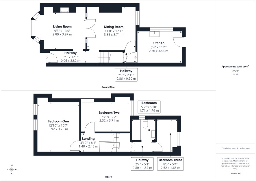 Ground Floor Entrance Hall Radiator. Living Room - 9'5" x 13'0" (2.89m x 3.97m) Window to front. Fireplace. Dining Room - 11'0" x 12'1" (3.38m x 3.71m) Understairs cupboard housing meters. Window to rear. Radiator. Kitchen - 8'4" x 11'4" (2.56m x 3.46m) Range of white gloss wall and base units with laminate worktop. Radiator. Window to side elevation. Door to outside. First Floor Central landing leading to: Bedroom One - 12'10" x 10'7" (3.92m x 3.25m) Radiator. Window to front. Bedroom Two - 7'7" x 12'2" (2.32m x 3.71m) Radiator. Window to rear. Bedroom Three - 8'3" x 5'4" (2.52m x 1.63m) Radiator. Window to rear. Bathroom - 5'7" x 5'10" (1.71m x 1.79m) Comprised of a white three-piece suite which includes: a panelled bath with a shower over, a pedestal wash hand basin and a low-level WC. Radiator. Window to side elevation.