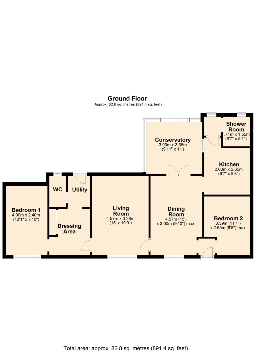 Ground Floor: Porch, Dining Room, Conservatory, Kitchen, Shower Room, Living Room, Dressing Area, Utility, WC, Bedroom One, Bedroom Two. Outside: Secluded garden with a shaded pergola and three garden sheds. Rear Access - There is a 10 foot unrestricted vehicular and pedestrian right of way providing access to the rear of the property via double timber gates.mainly laid to lawn with a garden shed.