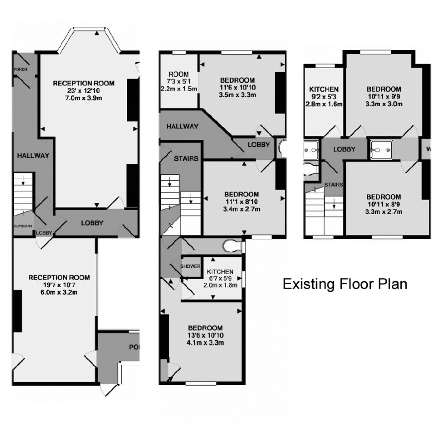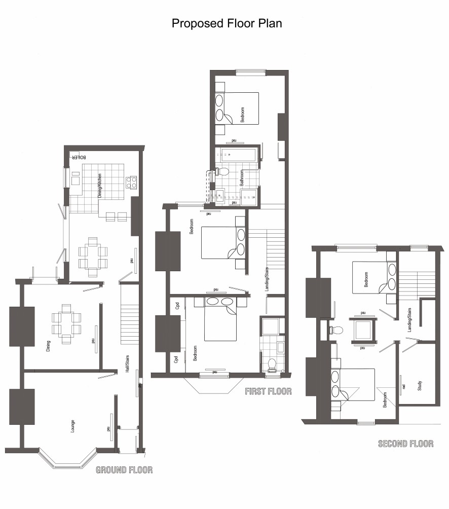 The plans included with these particulars show the approximate existing and proposed layout for each property.