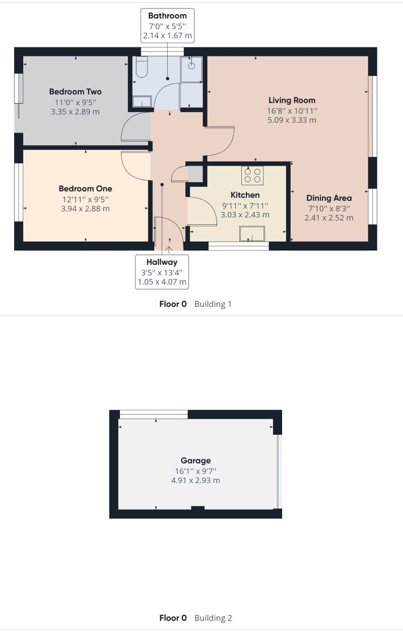 TWO BEDROOM DETACHED BUNGALOW IN POPULAR AREA. 4 Mill Rise is a deceptively spacious detached bungalow, sitting on an easy-to-maintain plot, with a detached garage, providing a superb opportunity to those wishing to put their own stamp on it. Located in an extremely popular area, just on the edge of the town with access to the local bus services. Its generously proportioned and has lots of potential. The property briefly comprises:- entrance hall, kitchen, lounge/dining room to the front of the property, two double bedrooms, family bathroom, garden to the rear and front, separate garage and off-street parking for two cars. Accommodation ENTRANCE HALL- 3'5 (1.05m) x 7'11 (2.43m) Door to the front aspect, coving, storage cupboard which houses the boiler, radiator, telephone point and power points. LOUNGE/DINING AREA- 16'8 (5.09m) x 10'11 (3.33m) / 7'10 (2.41m) x 8'3 (2.52m) Large window to the front aspect, coving, gas fire place with hearth, radiator, TV point and power points. KITCHEN- 9'11 (3.03m) x 7'11 (2.43m) Window to the side aspect, coving, a range off wall and base units, tiled splash back, sink with drainer unit, space for washing machine, space for fridge freezer, gas hob, wall mounted double, fan assisted electric oven, extractor hood, laminated flooring, radiator and power points. BEDROOM ONE- 12'11 (3.94m) x 9'5 (2.88m) Window to the rear aspect, coving, fitted wardrobes, radiator and power points. BEDROOM TWO- 11'0 (3.35m) x 9'5 (2.89m) Sliding doors to the rear aspect, coving, radiator and power points. BATHROOM- 7'0 (2.14m) x 5'5 (1.67m) Opaque window to the side aspect, partially tiled walls, three piece bathroom suite comprising:- low flush WC, sink with vanity unit, fully tiled shower cubicle, radiator and extractor fan. GARDEN Easily maintained gardens which is mainly laid with patio, plant and shrub borders as well as access to the garage and parking. GARAGE- 16'1 (4.91m) x 9'7 (2.93m) Up and over do