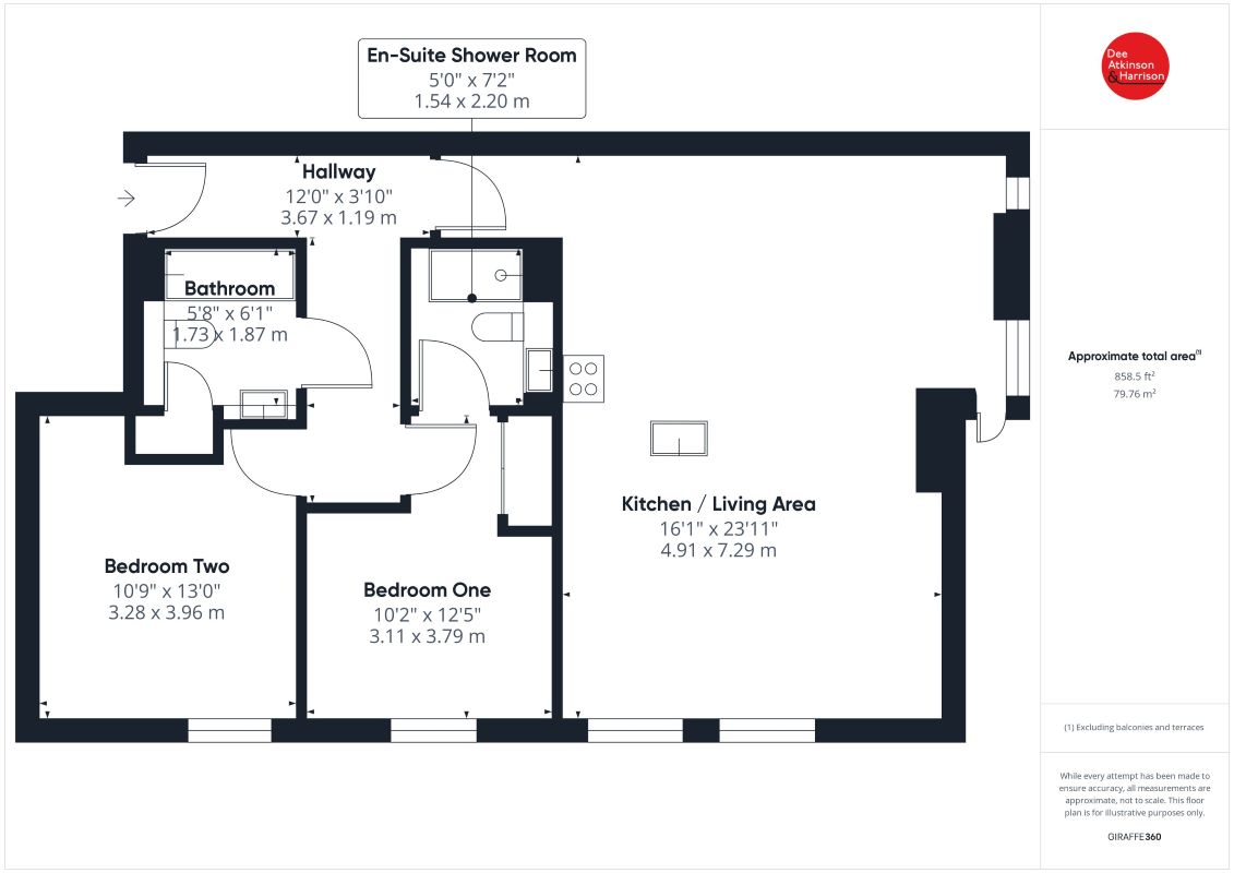 Communal Entrance Lift and stairs giving access to all the floors. Entrance Hall Doors to: Open Plan Sitting Room/Kitchen Large open plan space. The fitted kitchen has a range of wall and base units, integrated appliances including an oven and hob, fridge and freezer and an automatic washing machine (not tested). The living area has 3x double glazed window to the front aspect, TV aerial point and an electric heater. Bedroom One Double bedroom and electric wall heater. fitted wardrobe and a double glazed window. En- Suite Shower Room With walk in shower cubical, wash hand basin and low level w/c. Bedroom Two Another double bedroom with electric wall heater and duble glazed window. Bathroom With a three piece suite comprising: panelled bath with shower over, vanity wash hand basin and low level w/c. Tiled flooring.