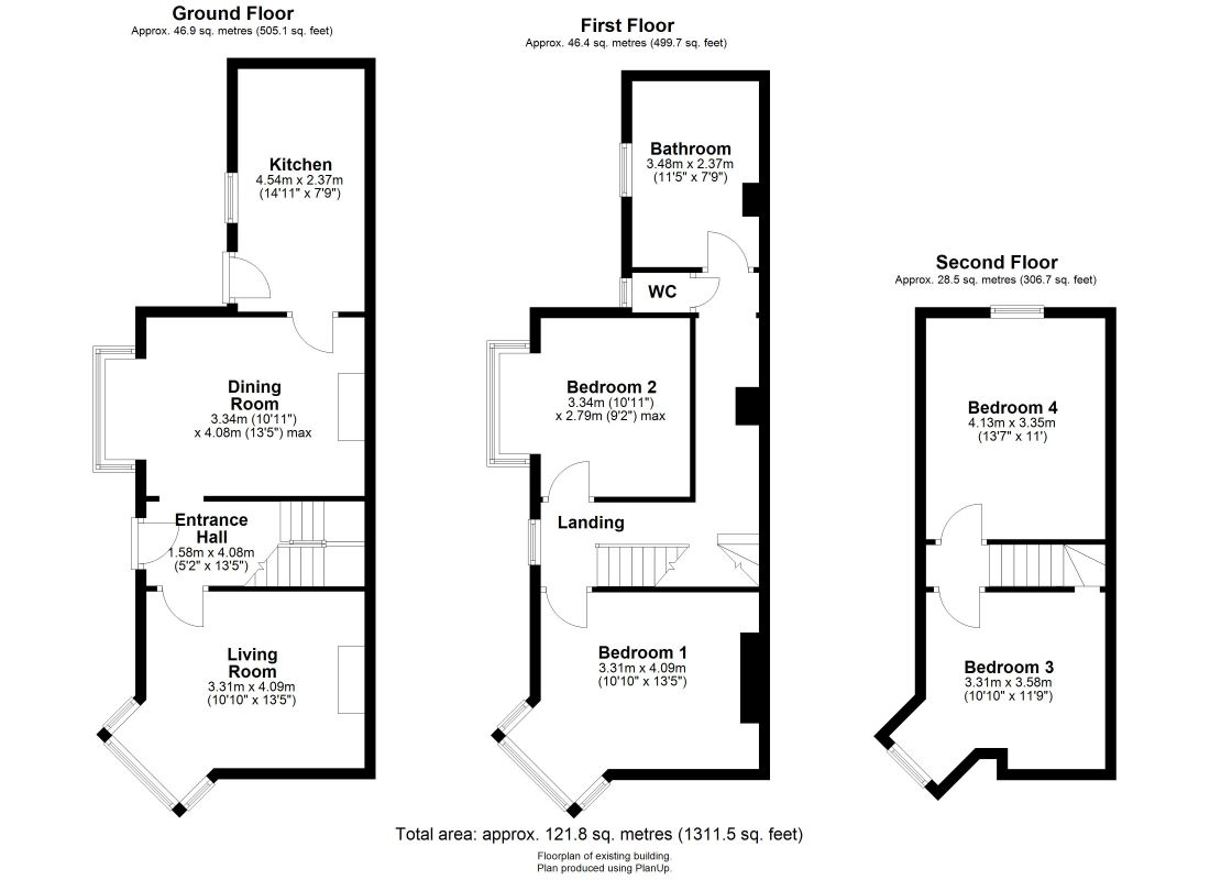 Ground Floor: Entrance Hall, Living Room, Dining Room, Kitchen. First Floor: Landing, two double Bedrooms, Bathroom. Second Floor: Two further double Bedrooms,