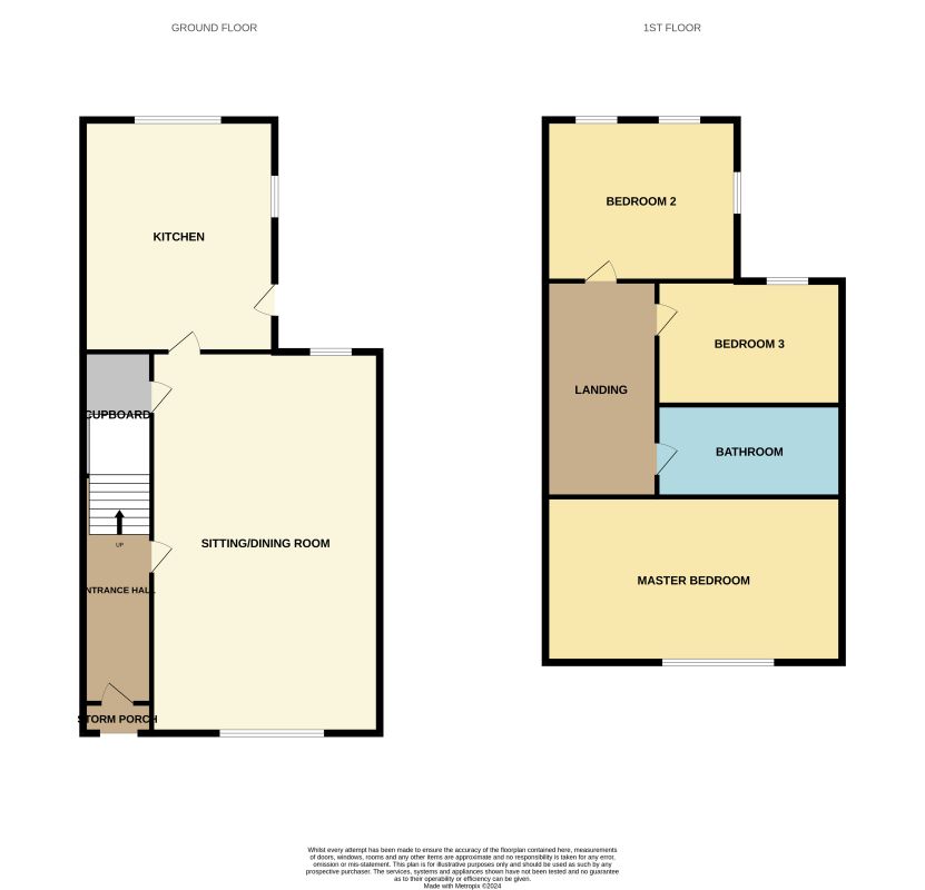 Ground Floor Entrance Hall A double-glazed entrance door opens in from the front. A staircase leads to the first floor. Radiator. Sitting Room 11' x 10'9" (3.35m x 3.28m) The sitting has a windows to the front. Dining Room 11'5" x 10'8" (3.48m x 3.25m) With a rear aspect. An under-stairs storage cupboard provides practical storage solutions. Kitchen 11'5" x 9'8" (3.48m x 2.95m) The kitchen enjoys a rear aspect and an entrance door leading outside. Fitted with maple-style base and wall-mounted cabinets offering cupboard and drawer space. Complementary laminated work surfaces and stainless steel sink unit. First Floor Landing The central landing has doors leading off to the individual rooms. Principal Bedroom 15'9" x 11' (4.8m x 3.35m) With a front aspect. The room is equipped with fitted wardrobes along one wall. Bedroom 2 10' x 6'4" (3.05m x 1.93m) The room is fitted with a radiator and a rear aspect. Bedroom 3 11' x 9'5" (3.35m x 2.87m) This versatile room enjoys aspects to the side and rear. Bathroom 10'4" x 5'2" (3.15m x 1.57m) The bathroom is appointed with a three-piece suite comprising a bath, washbasin, and WC. Tiled splashback areas.