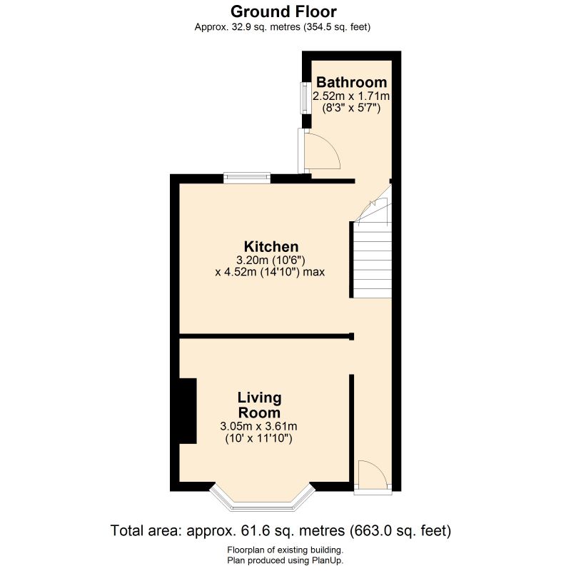 Ground Floor: Entrance hall, living room, kitchen, bathroom. First Floor: Landing, two bedrooms.