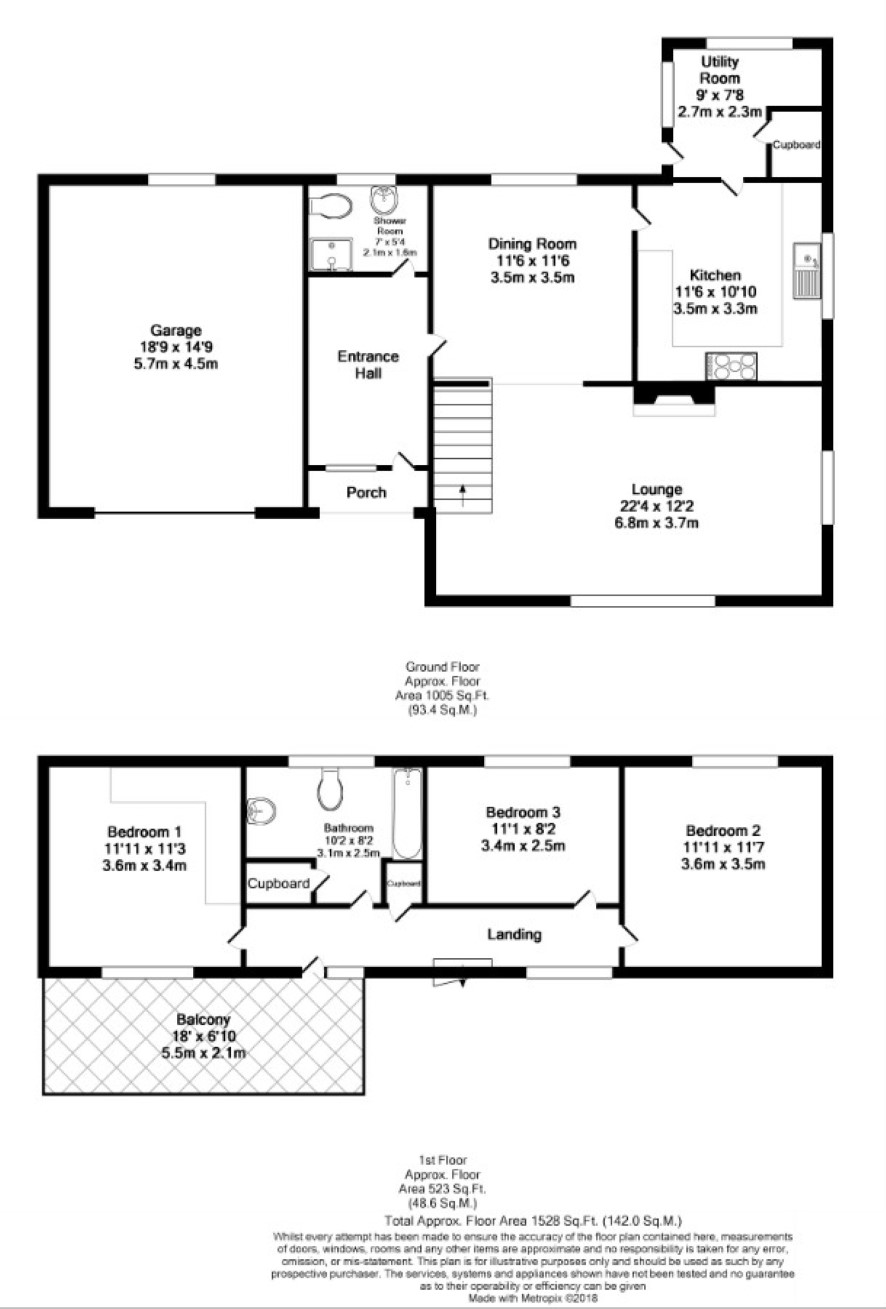 2.25m x 2.78m (7'5 x 9'1) Terrazzo tiled floor, built in cupboards, uPVC double glazed windows and door to rear garden. Open Tread Staircase From Lounge uPVC double glazed French doors to south facing balcony. Built in cupboard. Bedroom 3.58m x 3.63m (11'9 x 11'11) Range of natural wood built in furniture comprising three single and one double wardrobes, kneehole dressing unit with two drawers, south facing uPVC double glazed window, radiator. Bedroom 3.17m x 3.66m (10'5 x 12'0) North facing uPVC double glazed window, radiator. Bedroom 3.17m x 3.66m (10'5 x 12'0) North facing uPVC double glazed window, two wall light points, radiator. Fully Tiled Bathroom 2.32m x 3.12m (7'7 x 10'3) max Including airing cupboard with lagged hot water cylinder, electric immersion heater, and recess for panelled bath with mixer tap and telephone style hand held shower. Low flush w.c., pedestal wash basin, radiator.