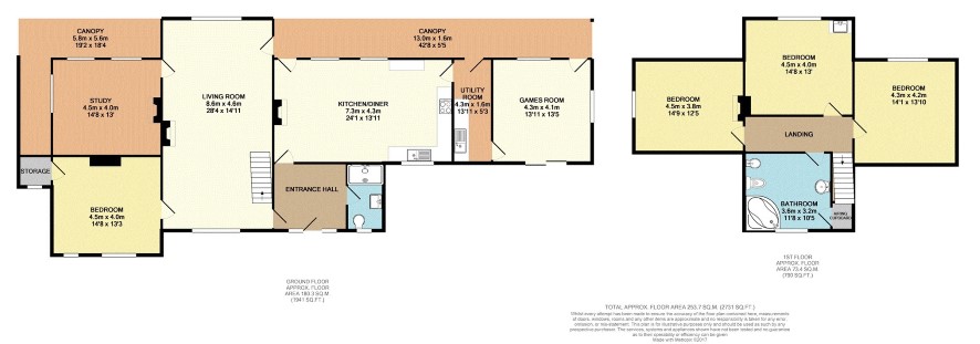 Entrance Hall Living Room 8.81m x 4.24m (28’11 x 13’11) Downstairs Shower Kitchen/Diner 6.81m x 4.27m (22’4 x 13’10) Office 4.55m x 3.89m (14’11 x 12’9) Bedroom 4.47m x 3.89m (14’8 x 12’9) Utility Room 4.19m x 1.57m (13’9 x 5’2) Games Room 4.37m x 4.09m (14’4 x 13’5) Master Bedroom 4.32m x 4.22m (14’2 x 13’10) Bedroom 4.47m x 3.96m (14’8 x 13’0) Bedroom 4.52m x 3.94m (14’10 x 12’11) Family Bathroom 3.28m x 3.23m (10’9 x 10’7) Externally To the South of the property is the original Station canopy fronting the railway line.