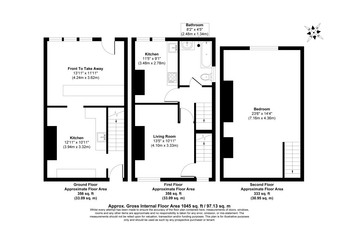 Situation: The property is situate on Bath Place, Halifax a central area amongst primarily residential property, within close proximity to the town centre and its many facilities and amenities. Halifax itself is well located for access to the M62, and Leeds, Huddersfield and Manchester. Description: A rare opportunity to purchase an end of terrace mixed use property, having previously been run as a Fast Food Takeaway, with accommodation above. The property requires some improvement work, but this is an ideal opportunity for an owner occupier to live and run a business on site, convert back to a residential dwelling (STP), or alternatively could be a high yielding investment opportunity for the discerning investor, with potential income of £9000 + per annum subject to specification. A viewing is recommended. Accommodation Ground Floor: Primary Retail Service Area – 13’11 x 11’11 (4.24m x 3.62m) Kitchen – 12’11 x 10’11 (3.94m x 3.32m) First Floor Landing Kitchen: 11’5 x 9’1 (3.48m x 2.78m) Living Room: 13’5 x 10’11 (4.10m x 3.33m) Bathroom Second Floor: Bedroom: 23’6 x 14’4 (7.16m x 4.36m) Outside: To the rear of the property is an enclosed rear yard. Material Information Tenure: The property is believed to be freehold. All prospective bidders should satisfy themselves of the tenure by inspecting the legal pack. Council Tax: By online enquiry with Calderdale Council we belieive the current rateable value (1 April 2017 to present) to be £2,025 Possession: Vacant possession will be given upon completion. Viewing: Strictly by appointment with Auction House. Services: Prospective purchasers are advised to make their own enquiries of the relevant statutory authorities. NB: Services, Apparatus and Equipment have not been tested by Auction House and therefore cannot be verified as being in working order. The buyer is advised to obtain verification from their Solicitor/Surveyor. These particulars are believed to be corr